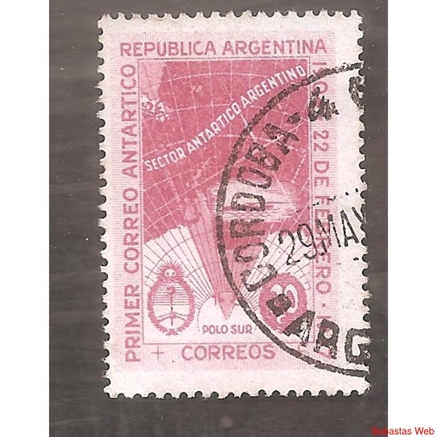 ARGENTINA 1947 ANIVERSARIO DEL PRIMER CORREO ANTARTICO, SIN FILIGRANA, USADA, NROCAT: MT486 GJ944