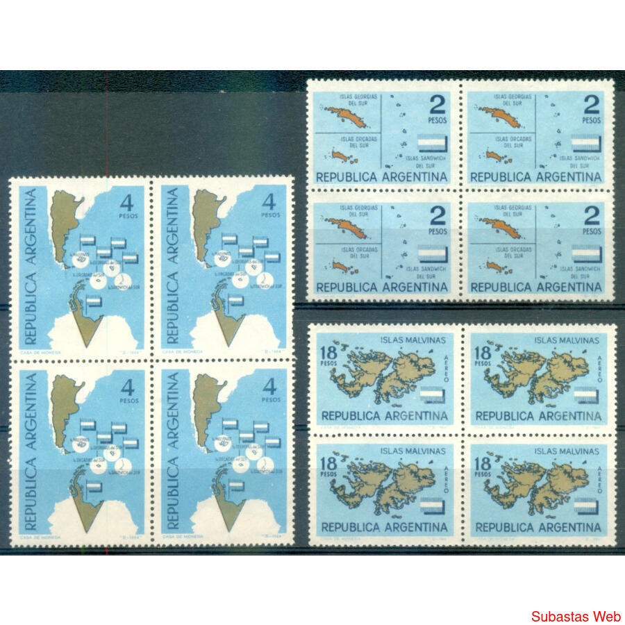 ARGENTINA. GJ1272 / 1274. SOBERANÍA ARGENTINA EN ZONA ANTÁRTICA. SERIE COMPLETA DE LOS 3 VALORES EN CUADRITOS NUEVOS SIN GOMA