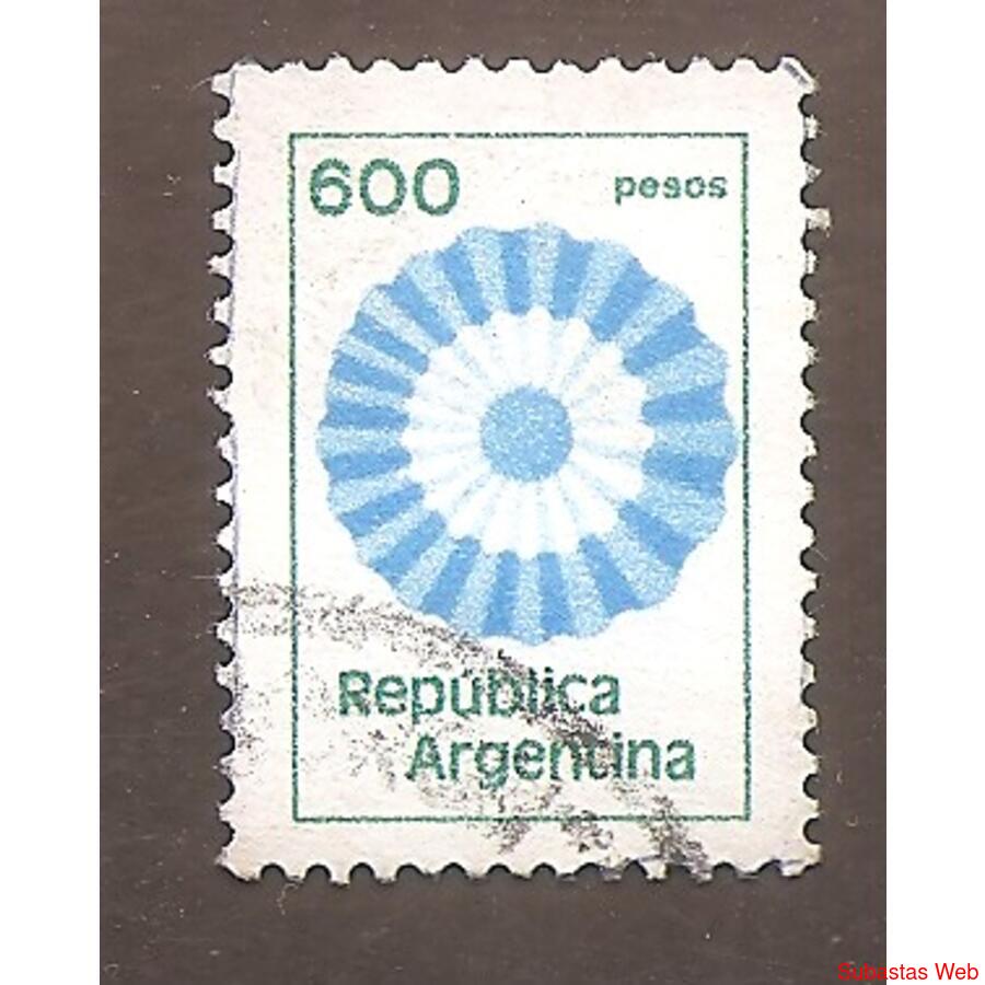 ARGENTINA 1980 CORREO ORDINARIO: ESCARAPELA DE $600, PAPEL MATE, USADA, NROCAT: MT1260