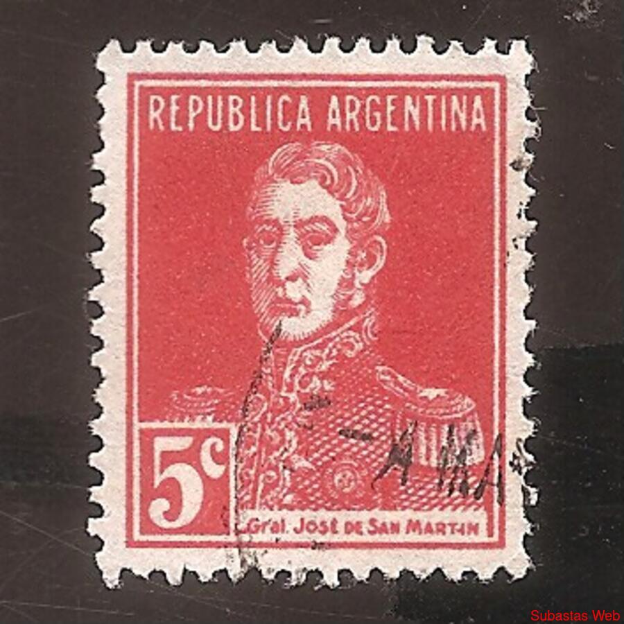 ARGENTINA 1923 SAN MARTIN SIN PUNTO, DENTADO 13,5x12,5 USADA, NROCAT: MT301 GJ599