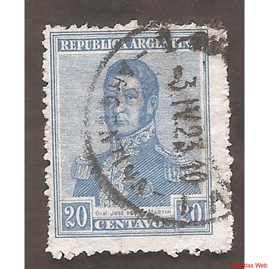 ARGENTINA 1922 SAN MARTIN EN RECUADRO, FILIGRANA SOL GRANDE RA, DENTADO 13,5x13,5 USADA, NROCAT: ,MT273 GJ556