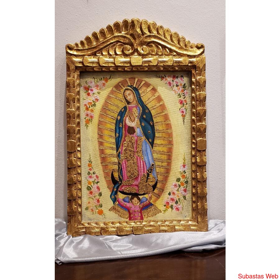 Oleo original Virgen de Guadalupe marco Cusqueño 30x40