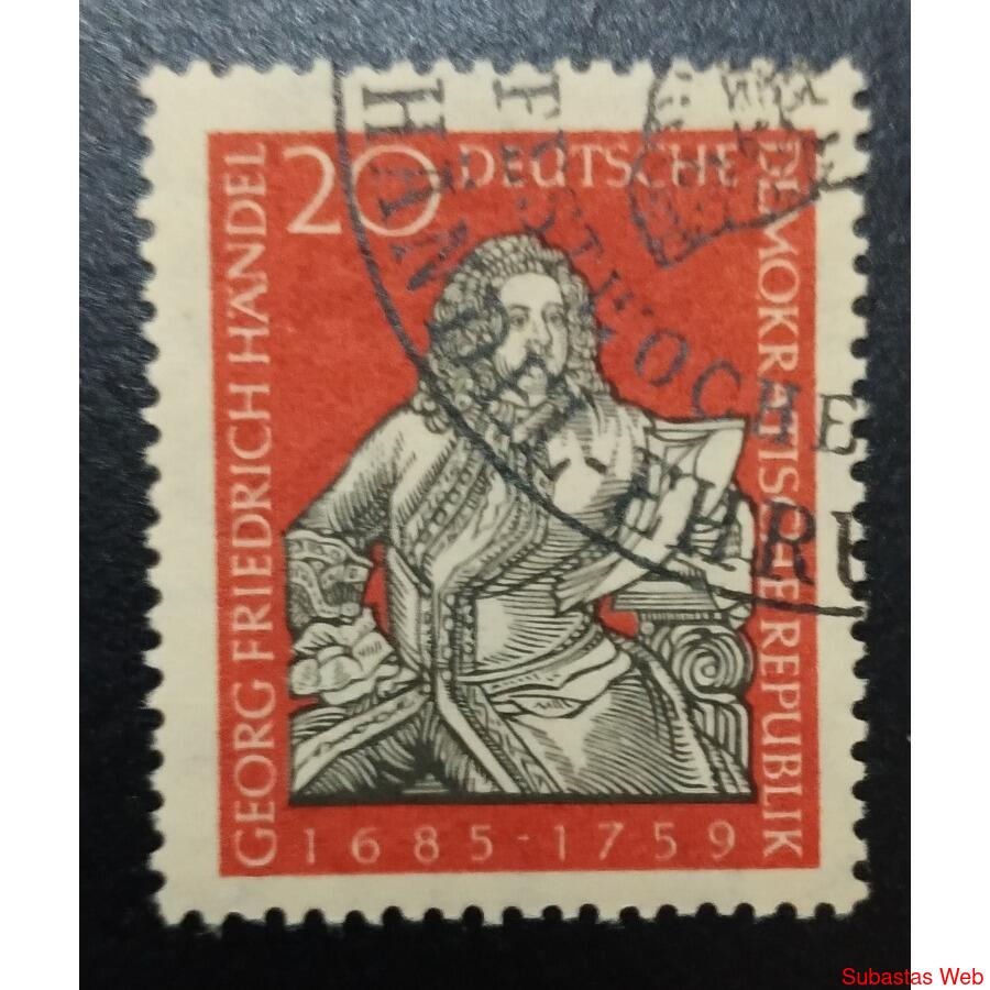 ALEMANIA DDR 1959; SCOTT 429 USADA, Bicentenario de la muerte del compositor Georg Friedrich Händel, 1.685 - 1.759.