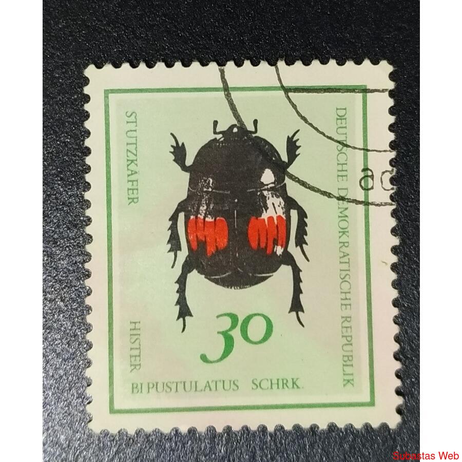 ALEMANIA DDR 1968; SCOTT 1052 USADA, Escarabajos, Hister bipustulatus.