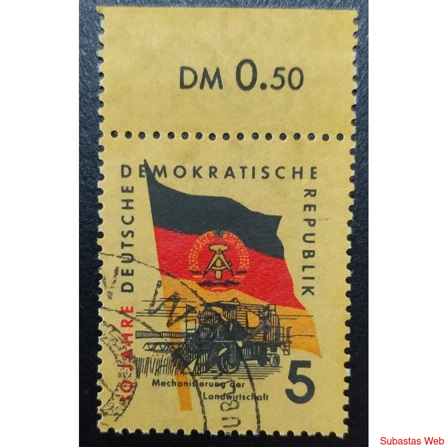 ALEMANIA DDR 1959; SCOTT 456 USADA, 10º Aniversario de la fundación de la RDA, Mecanización agrícola.