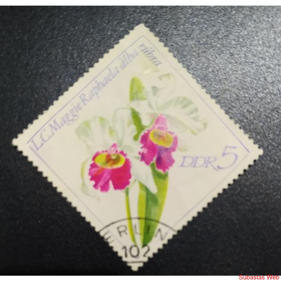 ALEMANIA DDR 1968; SCOTT 1057, USADA, Orquideas, Laeliocattleya Maggie Raphaela alba rubra.
