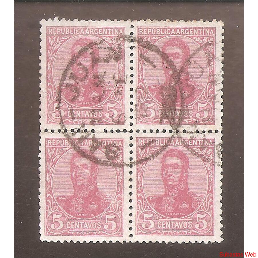ARGENTINA MATASELLO SAN JUAN 5 DE ENERO DE 1912 SOBRE CUADRITO DE SAN MARTIN EN OVALO DE 5ctvs: DE 1908 NROCAT: MT137