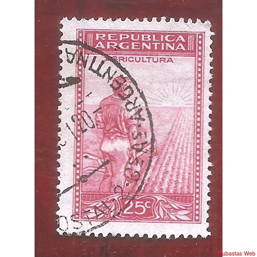 ARGENTINA 1935 CORREO ORDINARIO PROCERES Y RIQUEZAS: LABRADOR FILIGRANA SOL A RAYOS RECTOS, USADA, NROCAT: MT376I