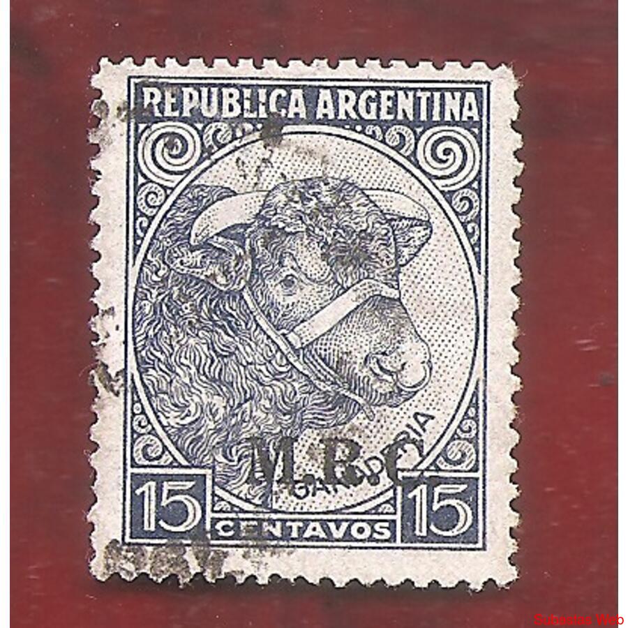 ARGENTINA 1935 CORREO ORDINARIO PROCERES Y RIQUEZAS: TORITO, SOBRECARGA MINISTERIAL: M.R.C. LETRAS PERFILADAS, USADA, NROCAT: MT376(333)