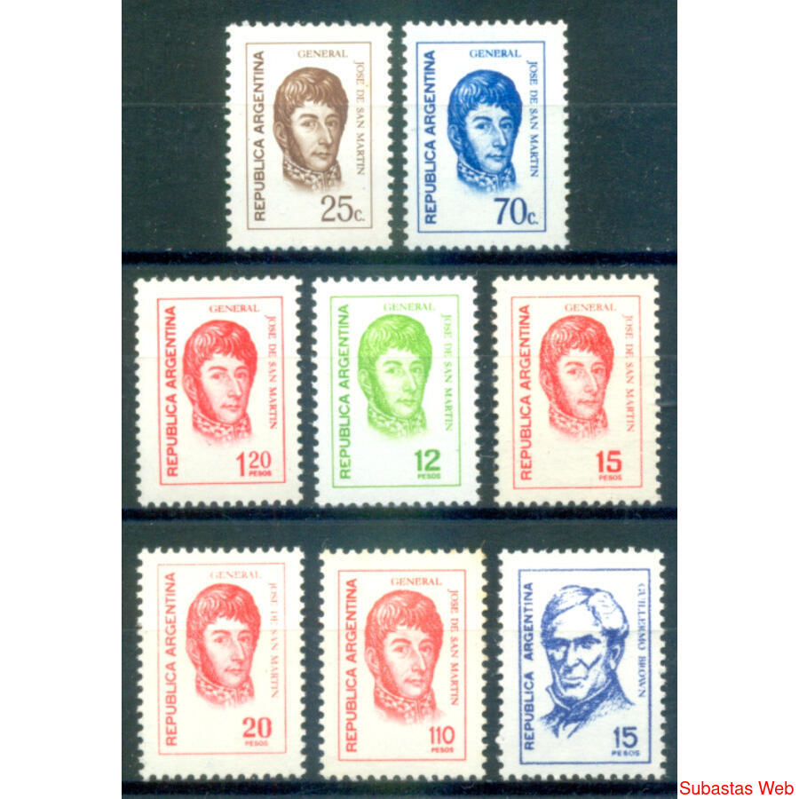 ARGENTINA. SERIE BÁSICA PRÓCERES TAMAÑO REDUCIDO. LOTE DE 8 VALORES DE LA SERIE.