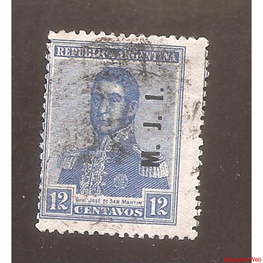 ARGENTINA 1917 SAN MARTIN EN RECUADRO, FILIGRANA HEXAGONOS HORIZONTALES, DENTADO 13,5x13,5 USADA, SOBRECARGA MINISTERIAL: M.J.I. NROCAT: MT219(113) COTIZACION CATALOGO JALIL U$S 20