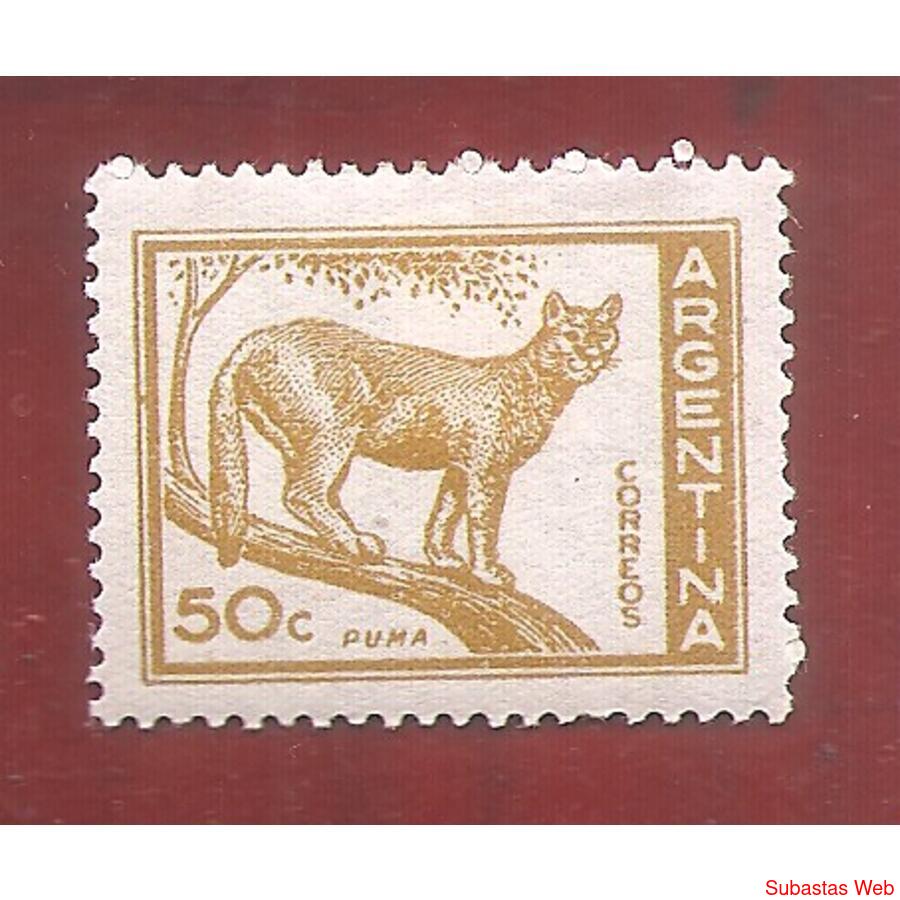 ARGENTINA 1959 CORREO ORDINARIO PROCERES Y RIQUEZAS NACIONALES: PUMA, NUEVA CON RESTOS DE BISAGRA, NROCAT: MT 603A GJ1125