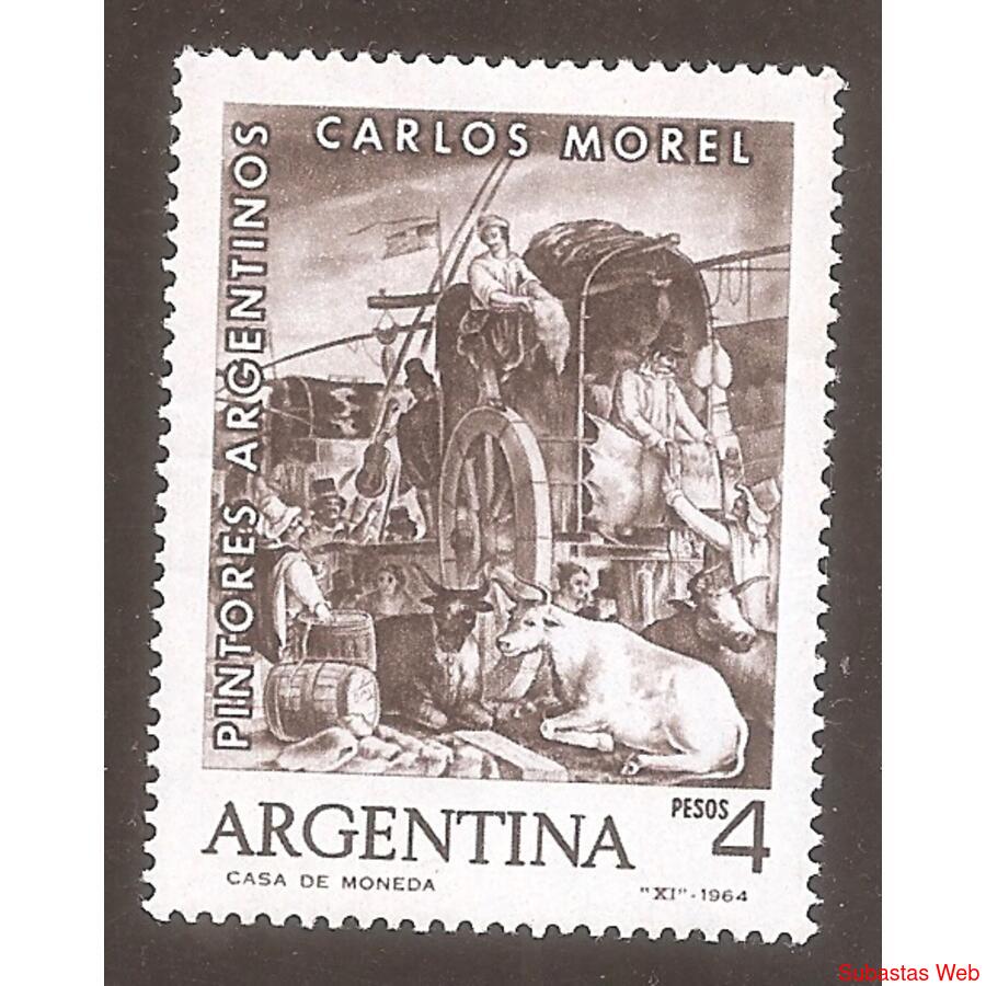 ARGENTINA 1964 CUADRO DE CARLOS MOREL: VARIEDAD SIN CATALOGAR: PUNTO BLANCO DEBAJO DE LA A DE CARLOS, MINT, NROCAT: MT698 GJ1290