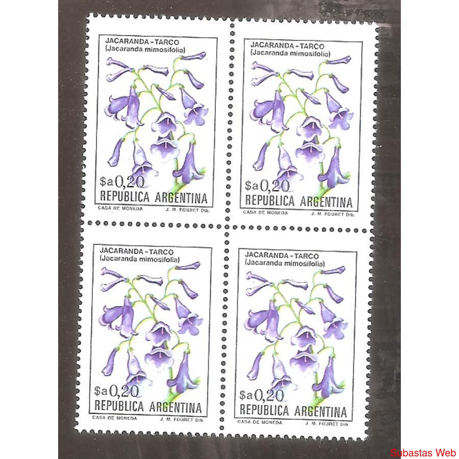 ARGENTINA 1983 CORREO ORDINARIO FLORES ARGENTINAS: JACARANDA FOSFORESCENTE EN CUADRITO MINT, NROCAT: MT1410 GJ2101