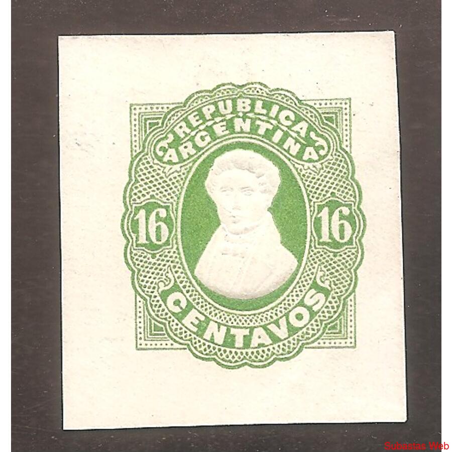 ARGENTINA 1878 AVELLANEDA CON RELIEVE, PAPEL LISTADO DIAGONAL INCLINADO HACIA DERECHA, CORTADO DE SOBRE POSTAL 16 CENTAVOS, USADO SIN MATASELLO. NROCAT: GJ SOB6