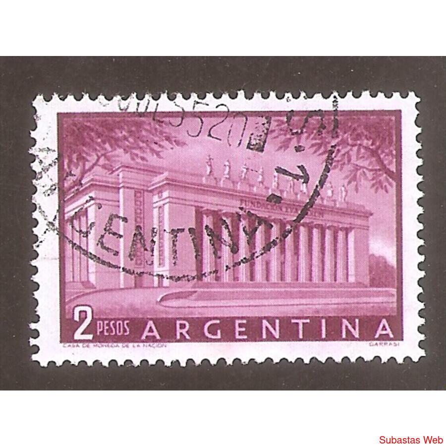 ARGENTINA 1954 CORREO ORDINARIO PROCERES Y RIQUEZAS NACIONALES: FUNDACION EVA PERON, COLOR CARMIN, USADA, NROCAT: MT548