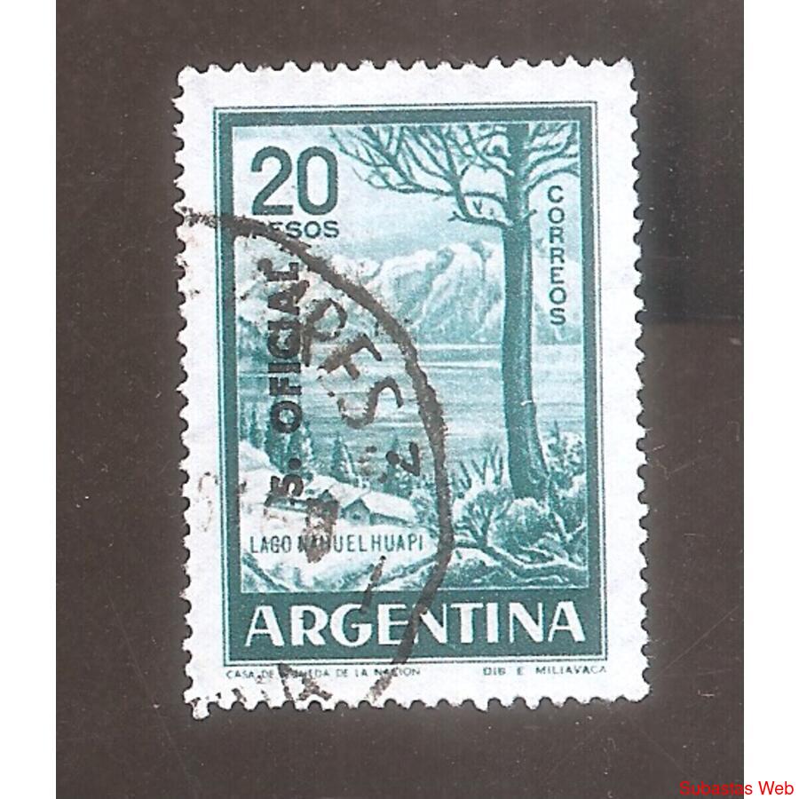 ARGENTINA 1959 CORREO ORDINARIO PROCERES Y RIQUEZAS NACIONALES: NAHUEL HUAPI PAPEL MATE, SOBRECARGA SERVICIO OFICIAL TIPO IX, USADA, NROCAT: MT606C(399)