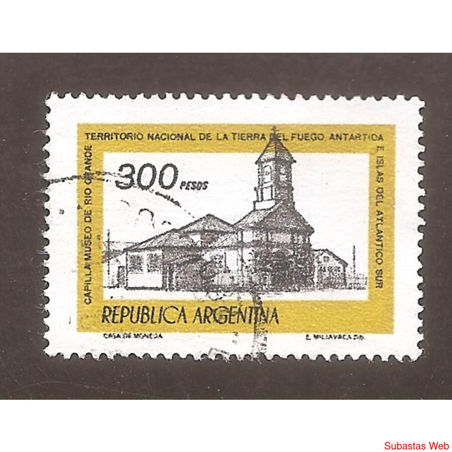 ARGENTINA 1978 CORREO ORDINARIO HISTORIA Y TURISMO, CAPILLA MUSEO DE RIO GRANDE, MATE FLUORESCENTE, SIN FILIGRANA, COLOR OCRE OSCURO Y NEGRO, USADA, NROCAT: MT1134