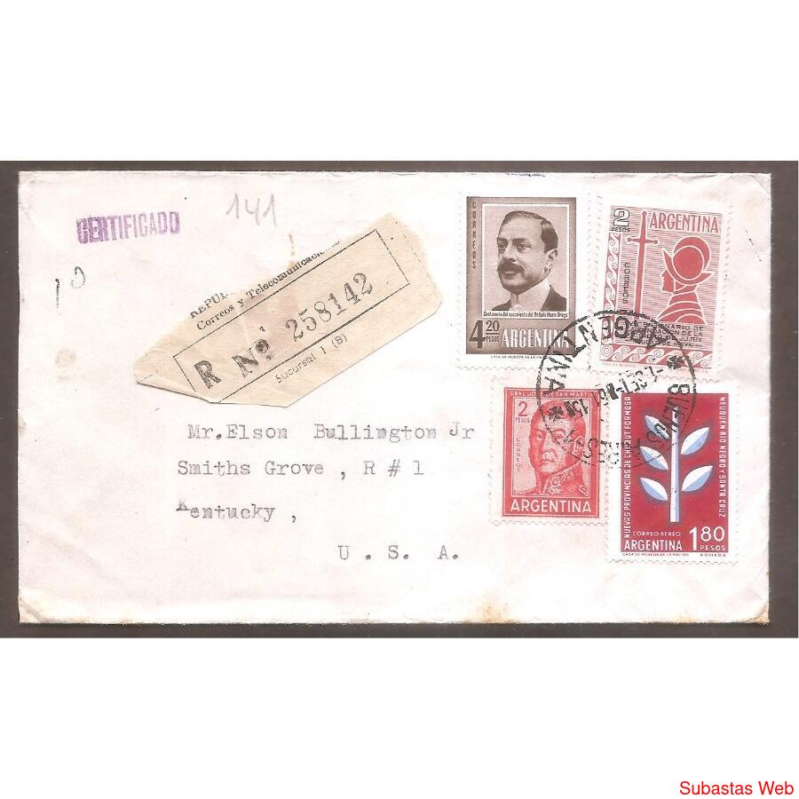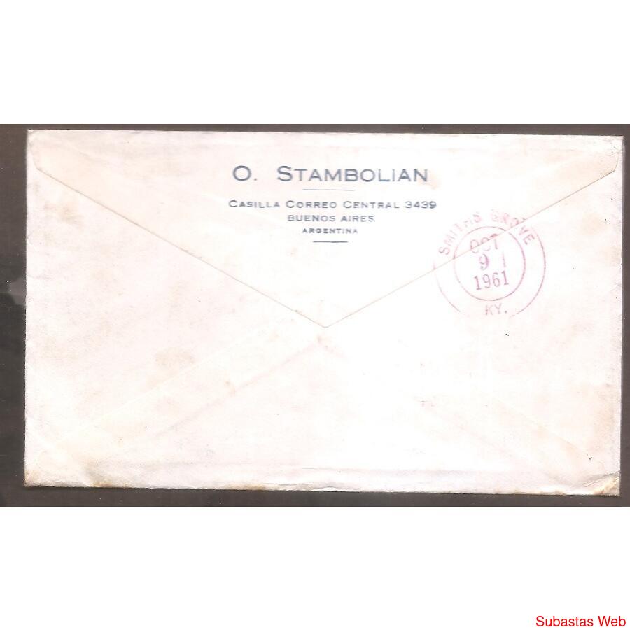 AGENTINA 1961 SOBRE CIRCULADO EL 1 DE SEPTIEMBRE DE 1961 DE BUENOS AIRES A KENTUCKY ESTADOS UNIDOS, CARTA CERTIFICADA, FRANQUEO: CORREO ORDINARIO: SAN MARTIN DE $2 Y LUIS MARIA DRAGO DE $4,4 MAS NUEVAS PROVINCIA Y IV CENTENARIO DE JUJUY. MATASELLO DE BUENOS AIRES, AL DORSO MEMBRETE DE 'O. STAMBOLIAN CASILLA DE CORREOS 3439'