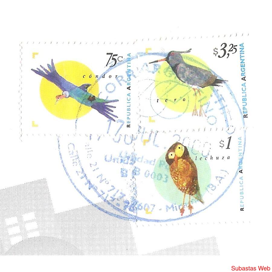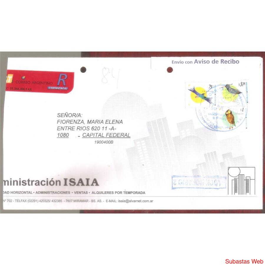 ARGENTINA 2000 Sobre de la Administracion e Inmobiliaria ISAIA, Circulado el 17 de Julio 2000, desde Miramar (Buenos Aires) a Capital Federal, Franqueo: 3 sellos de Correo Ordinario Pajaros: Condor, Tero y Lechuza
