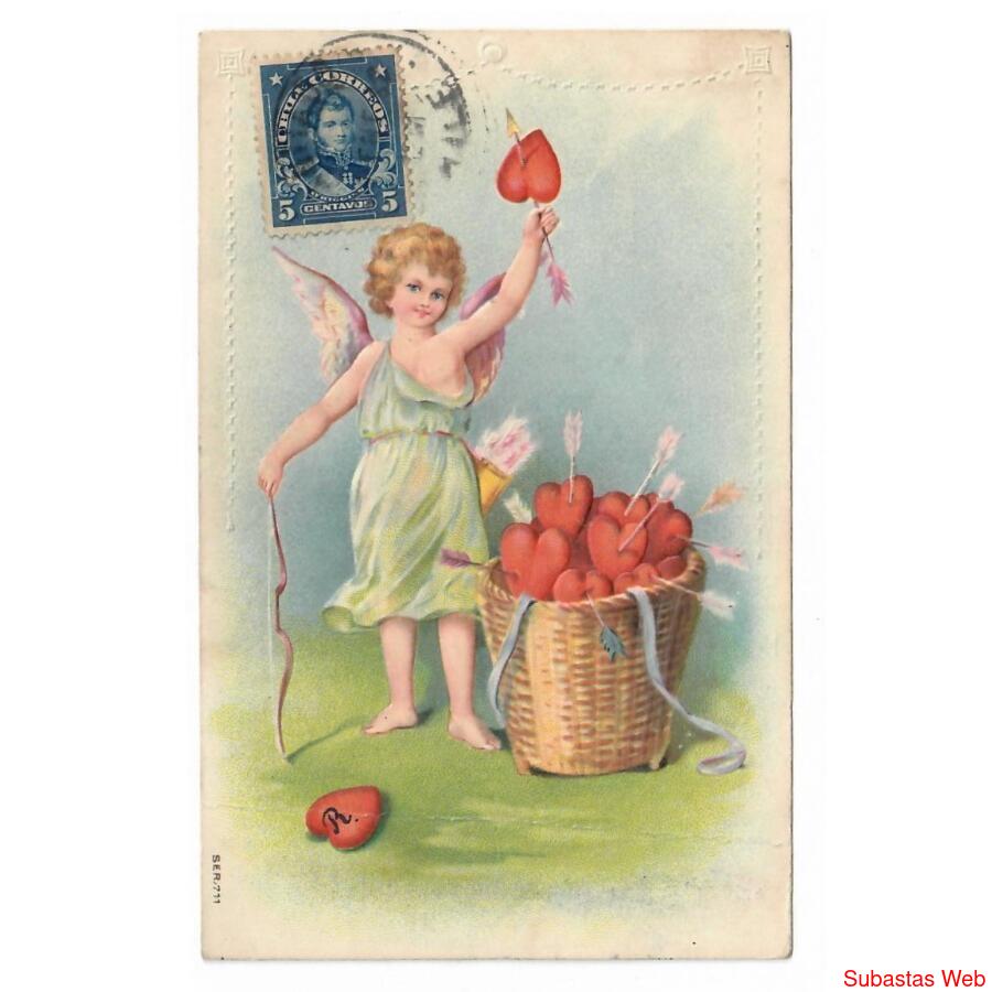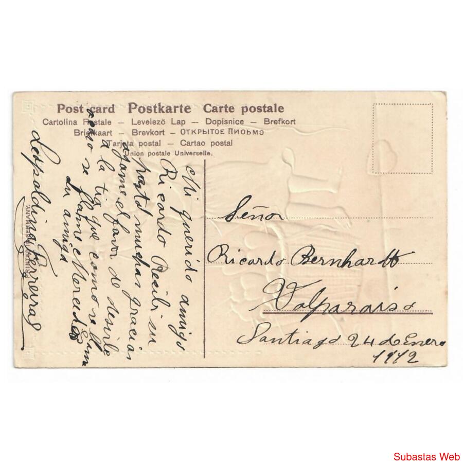 CIRCULADA EN 1912 // SELLO DE CHILE // REVERSO DIVIDIDO // FORMATO VERTICAL (88 X 138) // IMPRESA EN ALEMANIA // CON RELIEVE