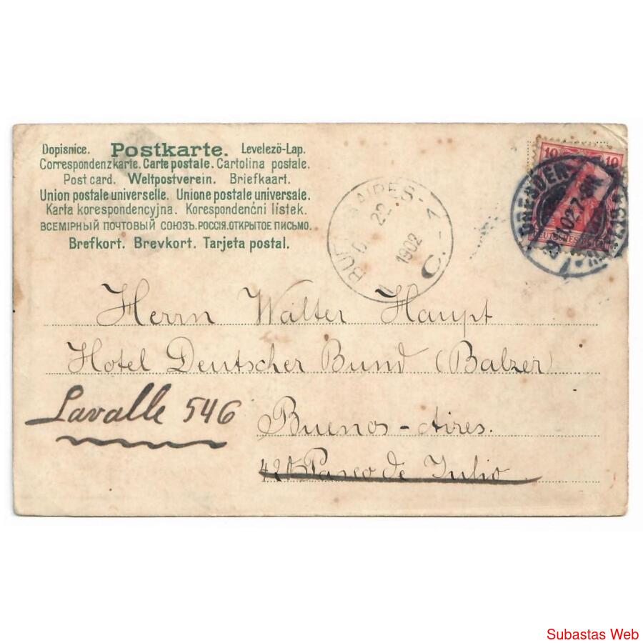 CIRCULADA EN 1902 // SELLO DEL IMPERIO ALEMÁN // REVERSO SIN DIVIDIR // FORMATO VERTICAL (90 X 141) // EDITADA POR J. C. SCHMIDT (ERFURT)