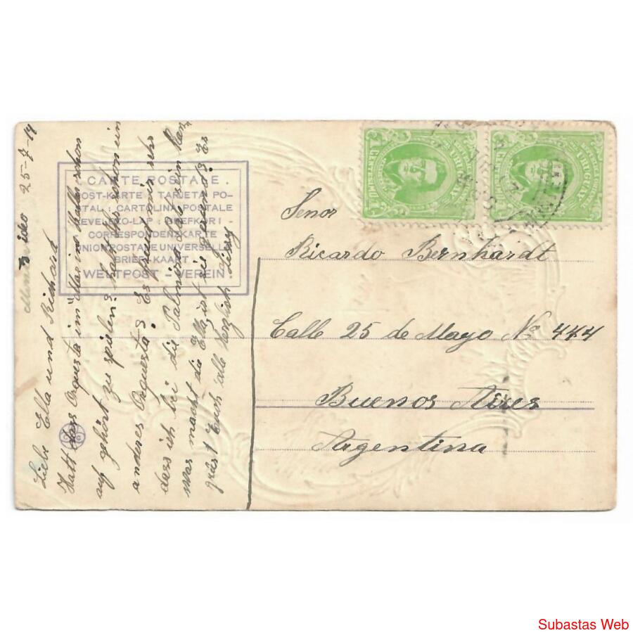 CIRCULADA EN 1914 // SELLOS DE URUGUAY // REVERSO DIVIDIDO A MANO // FORMATO VERTICAL (91 X 140) // CON RELIEVE