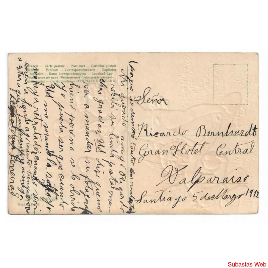 CIRCULADA EN 1912 // SELLO DE CHILE // REVERSO DIVIDIDO // FORMATO VERTICAL (89 X 138) // EDITADA POR P. F. Z. // CON RELIEVE