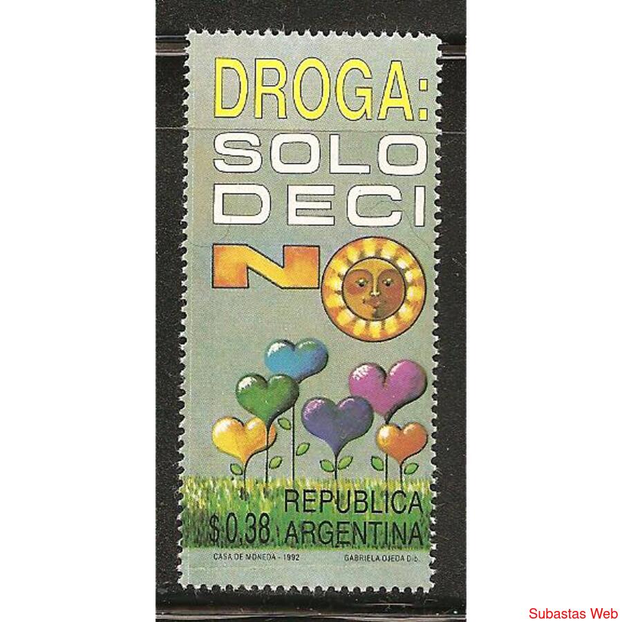 ARGENTINA 1992 PREVENCION DE LA DROGADICCION. BROGA: SOLO DECI NO, MINT, NROCAT: MT: 1898 GJ: .2613