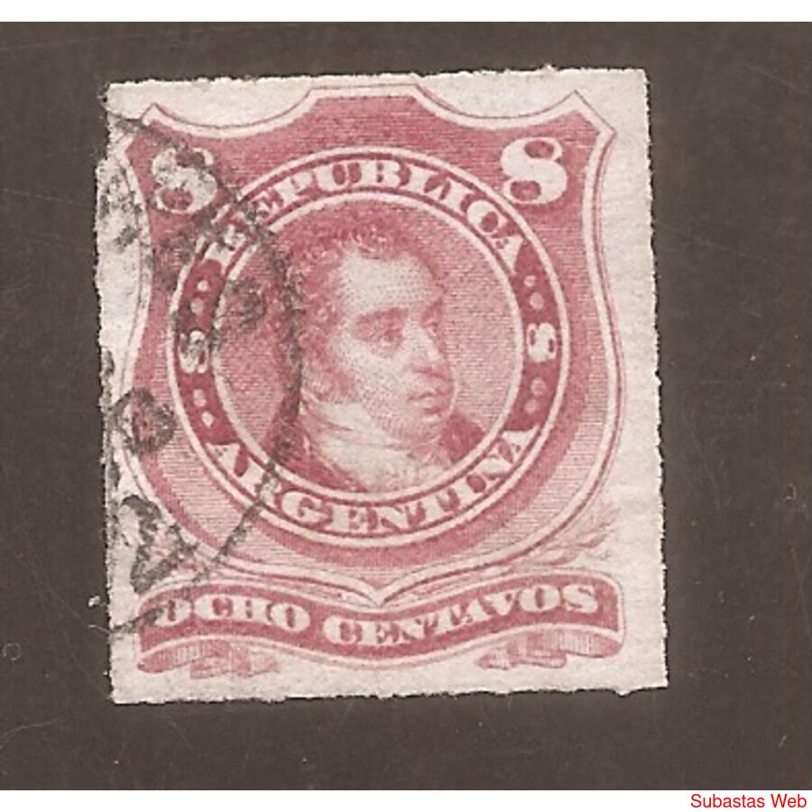 ARGENTINA 1876(33) PROCERES: RIVADAVIA CORTADO LINEA USADA