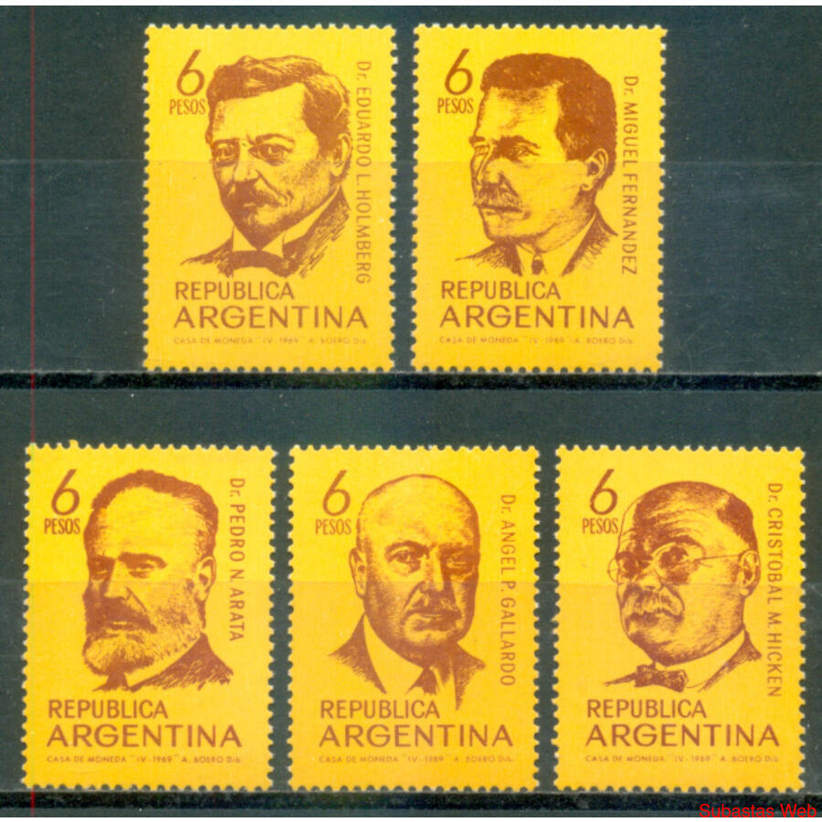 ARGENTINA. GJ1474 / 1478. "CIENTÍFICOS ARGENTINOS". Serie completa de 5 valores NUEVOS CON MUY SUAVE MARCA DE BISAGRA