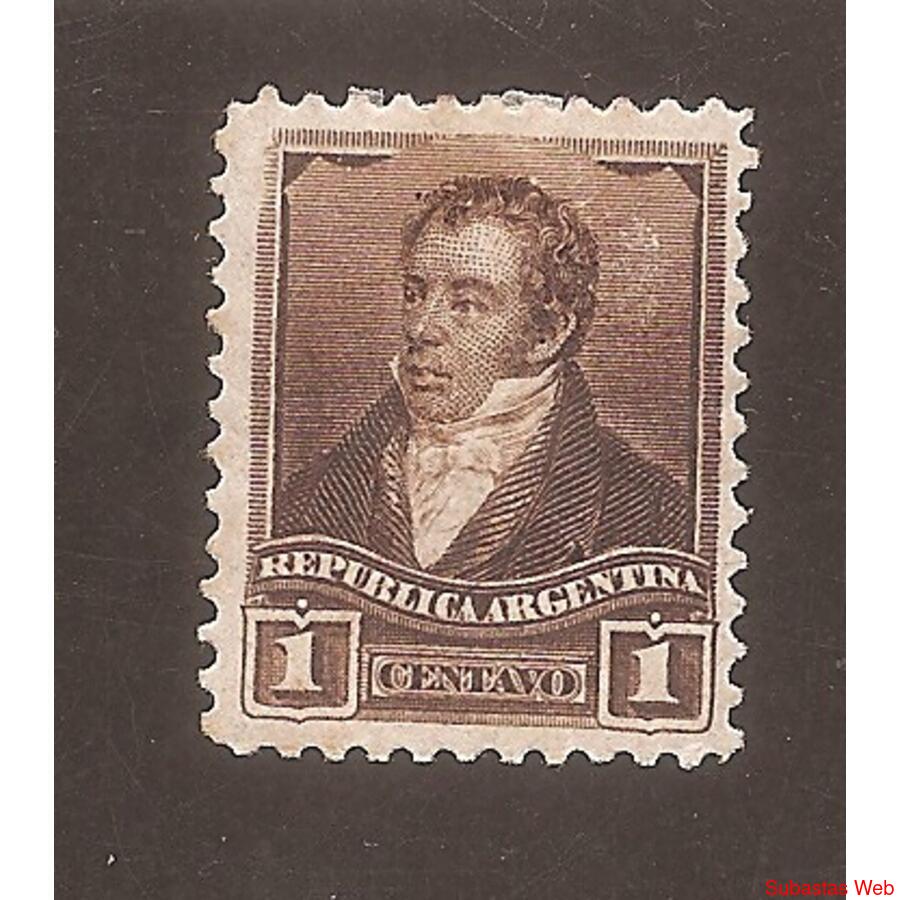 ARGENTINA 1892 SERIE TRES PROCERES: RIVADAVIA, FILIGRANA SOL GRANDE, DENTADO 11,5x11,5 NUEVA CON RESTO DE BISAGRA, NROCAT: MT95I GJ175
