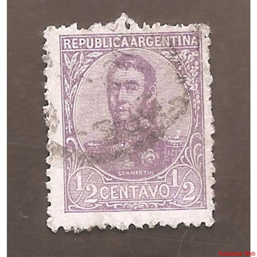 ARGENTINA 1908 SAN MARTIN EN OVALO, CON FILIGRANA, DENTADO 13,5x12,5 USADA, NROCAT: MT132 GJ275