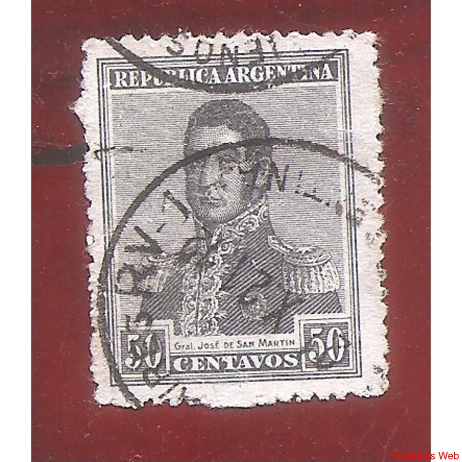 ARGENTINA 1918 SAN MARTIN EN RECUADRO SIN FILIGRANA, DENTADO 13,5x13,5 USADA, NROCAT: MT239 GJ475
