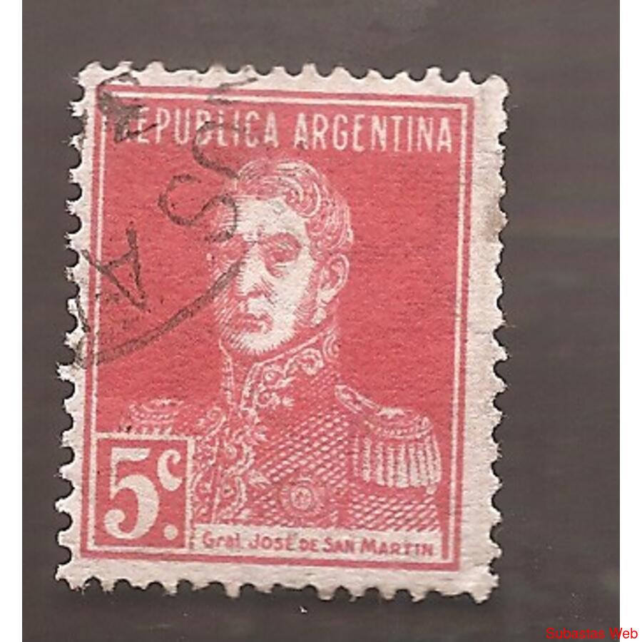 ARGENTINA 1923 SAN MARTIN CON PUNTO DESPUES DE LA CIFRA, FILIGRANA SOL RA, DENTADO 13,5x12,5 USADA, NROCAT: MT281 GJ567