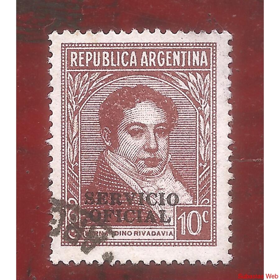 ARGENTINA 1939 CORREO ORDINARIO PROCERES Y RIQUEZAS NACIONALES: RIVADAVIA TIPO III, SOLAPA DEL CUEDO TERMINA EN PUNTA, FILIGRANA SOL RA CON RAYOS ONDULADOS, OFFSET, SOBRECARGA SERVICIO OFICIAL DE 12mm. USADA, NROCAT: MT395I(342E)