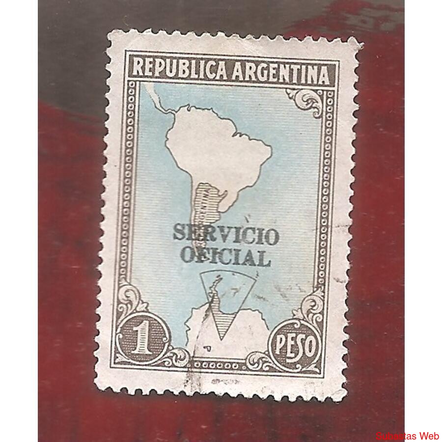 ARGENTINA 1951 CORREO ORDINARIO PROCERES Y RIQUEZAS NACIONALES: MAPA CON ANTARTIDA, PAPEL MATE NACIONAL, FILIGRANA SOL RA CON RAYOS ONDULADOS, SOBRECARGA SERVICIO OFICIAL DE 11mm. USADA, NROCAT: MT512Y(348b)