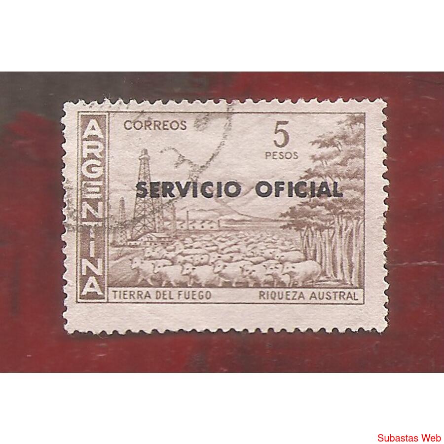 ARGENTINA 1959 CORREO ORDINARIO PROCERES Y RIQUEZAS NACIONALES: TIERRA DEL FUEGO RIQUEZA AUSTRAL, PAPEL MATE, SOBRECARGA SERVICIO OFICIAL TIPO II EN NEGRO, USADA, NROCAT: MT606(393)