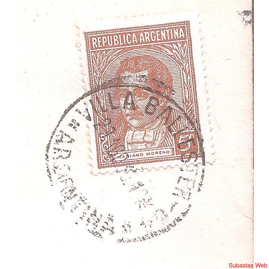Sobre Circulado el 27 DE AGOSTO de 1939 DE VILLA BALLESTER BUENOS AIRES A CAPITAL FEDERAL FRANQUEO: PROCERES Y RIQUEZAS, MORENO DE 5ctvs. Matasellos al frente VILLA BALLESTER AL DORSO REMITENTE IMPRESO Y MATASELLO BUENOS AIRES CON BANDELETA