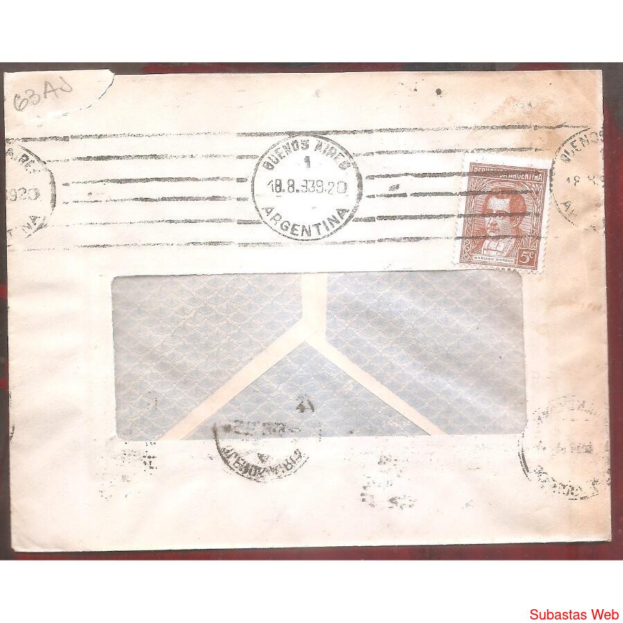 ARGENTINA 1939 SOBRE CIRCULADO NUMERO 63AJ
