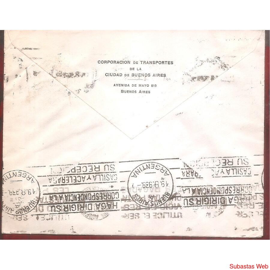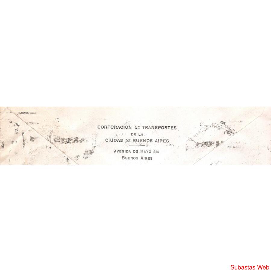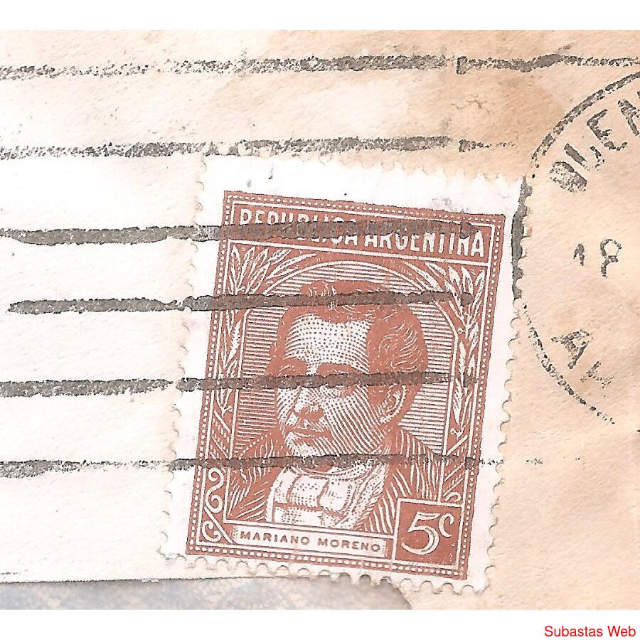 Sobre Circulado el 18 DE AGOSTO de 1939 DENTRO DE BUENOS AIRES A CAPITAL FEDERAL FRANQUEO: PROCERES Y RIQUEZAS, MORENO DE 5ctvs. Matasellos al frente BUENOS AIRES CON BANDELETA AL DORSO REMITENTE IMPRESO Y MATASELLO BUENOS AIRES CON BANDELETA
