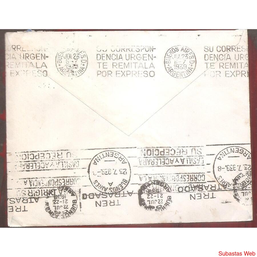 ARGENTINA 1939 SOBRE CIRCULADO NUMERO 63E