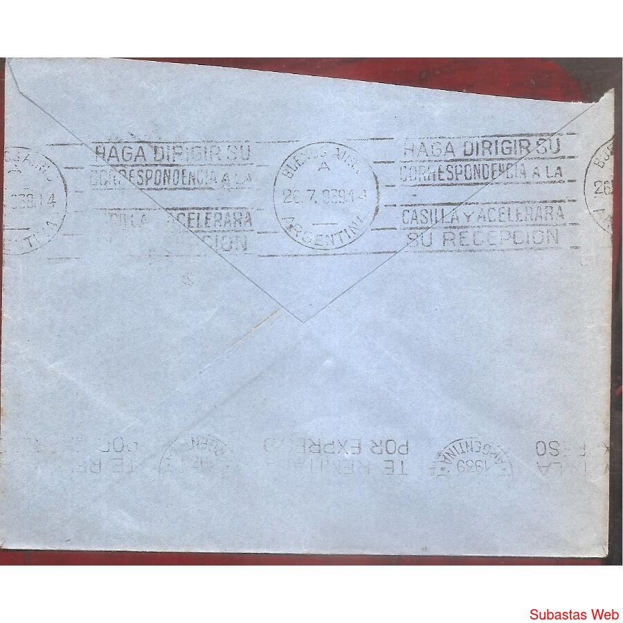 ARGENTINA 1939 SOBRE CIRCULADO NUMERO 63F