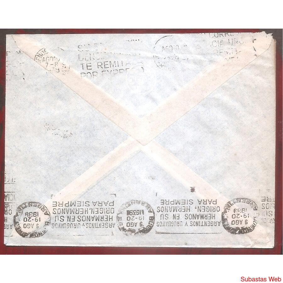 ARGENTINA 1939 SOBRE CIRCULADO NUMERO 63I