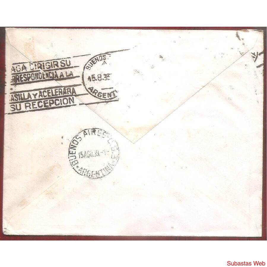 ARGENTINA 1939 SOBRE CIRCULADO NUMERO 63J