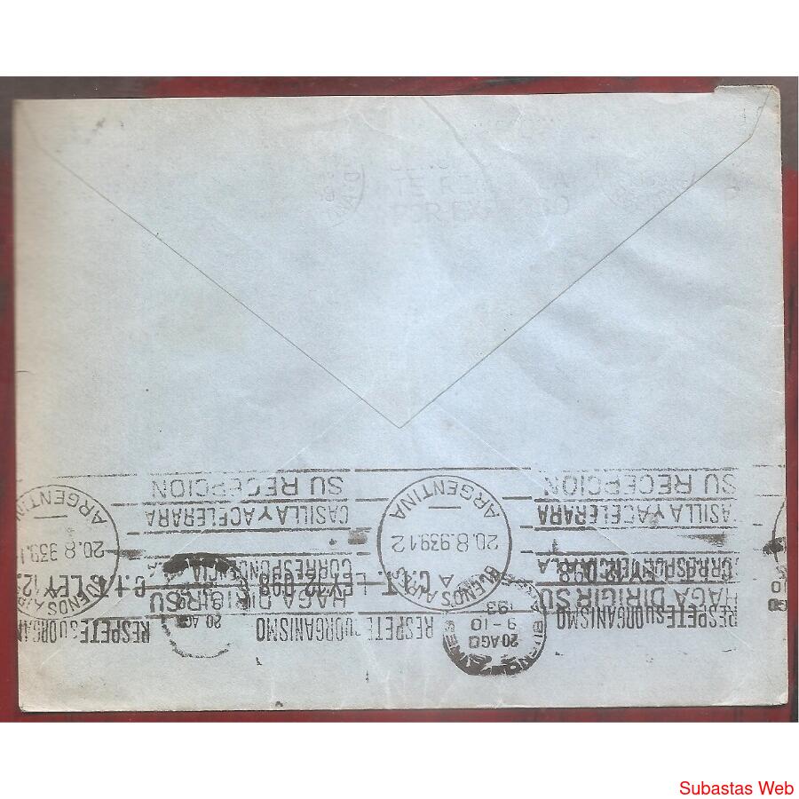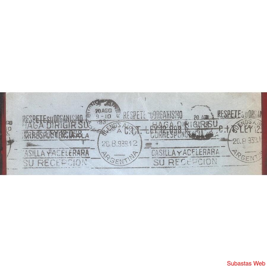 ARGENTINA 1939 SOBRE CIRCULADO NUMERO 63K