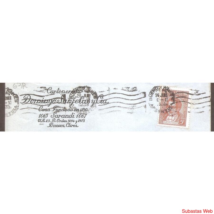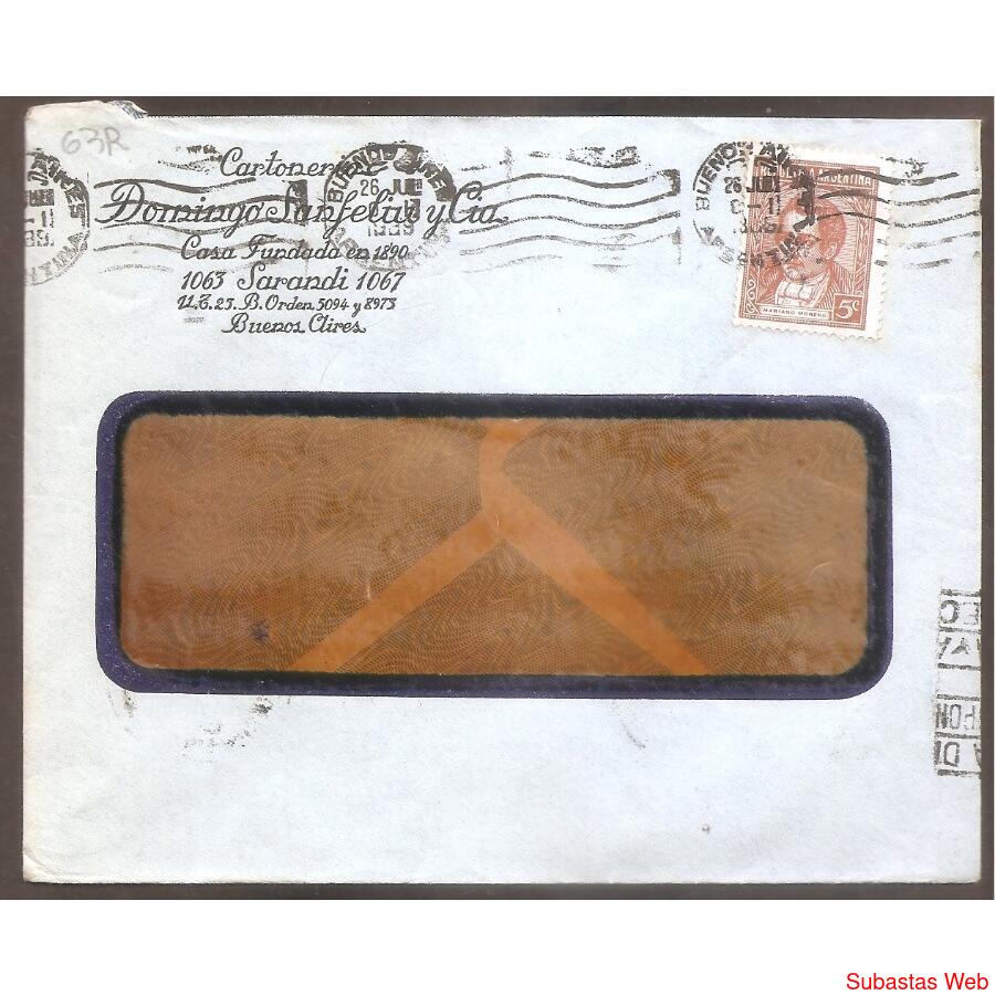 ARGENTINA 1939 SOBRE CIRCULADO NUMERO 63R