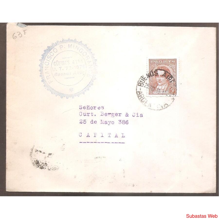 ARGENTINA 1939 SOBRE CIRCULADO NUMERO 63T