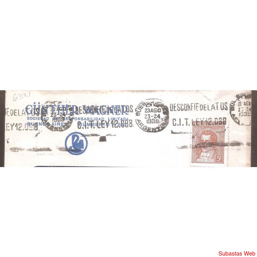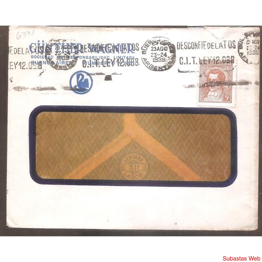 ARGENTINA 1939 SOBRE CIRCULADO NUMERO 63W