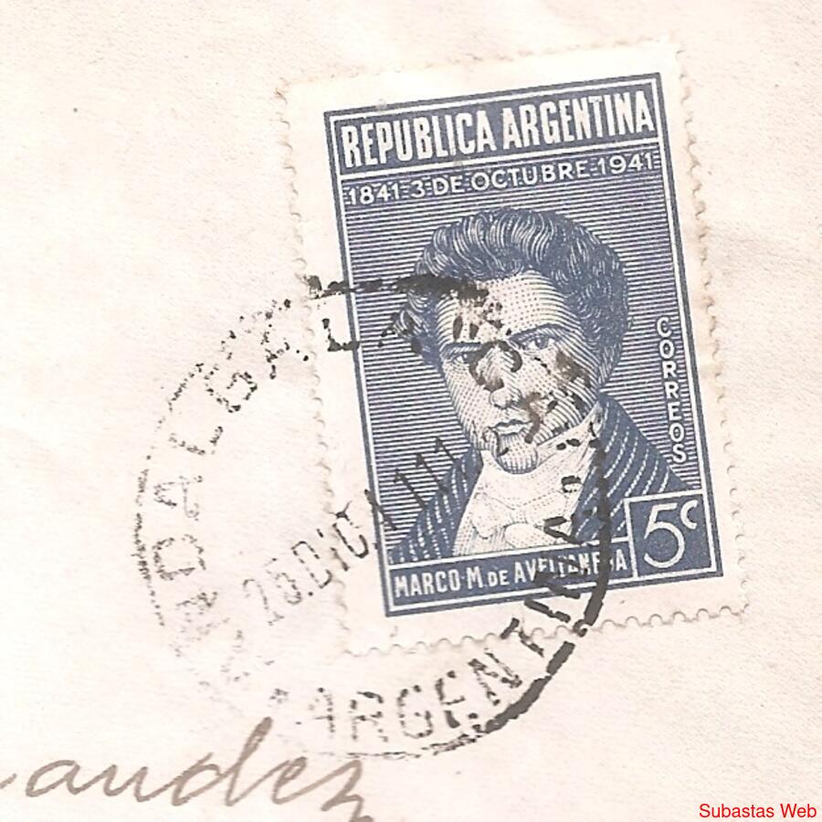 SOBRE CIRCULADO 25 DE OCTUBRE DE 1941 DE ANDALGALA -CATAMARCA- A BUENOS AIRES -CAPITAL- , FRANQUEO: CONMEMORATIVO DE MARCO AVELLANEDA., MATASELLO DE ANDALGALA, AL DORSO SELLO REDONDO CON EL NUMERO 1745